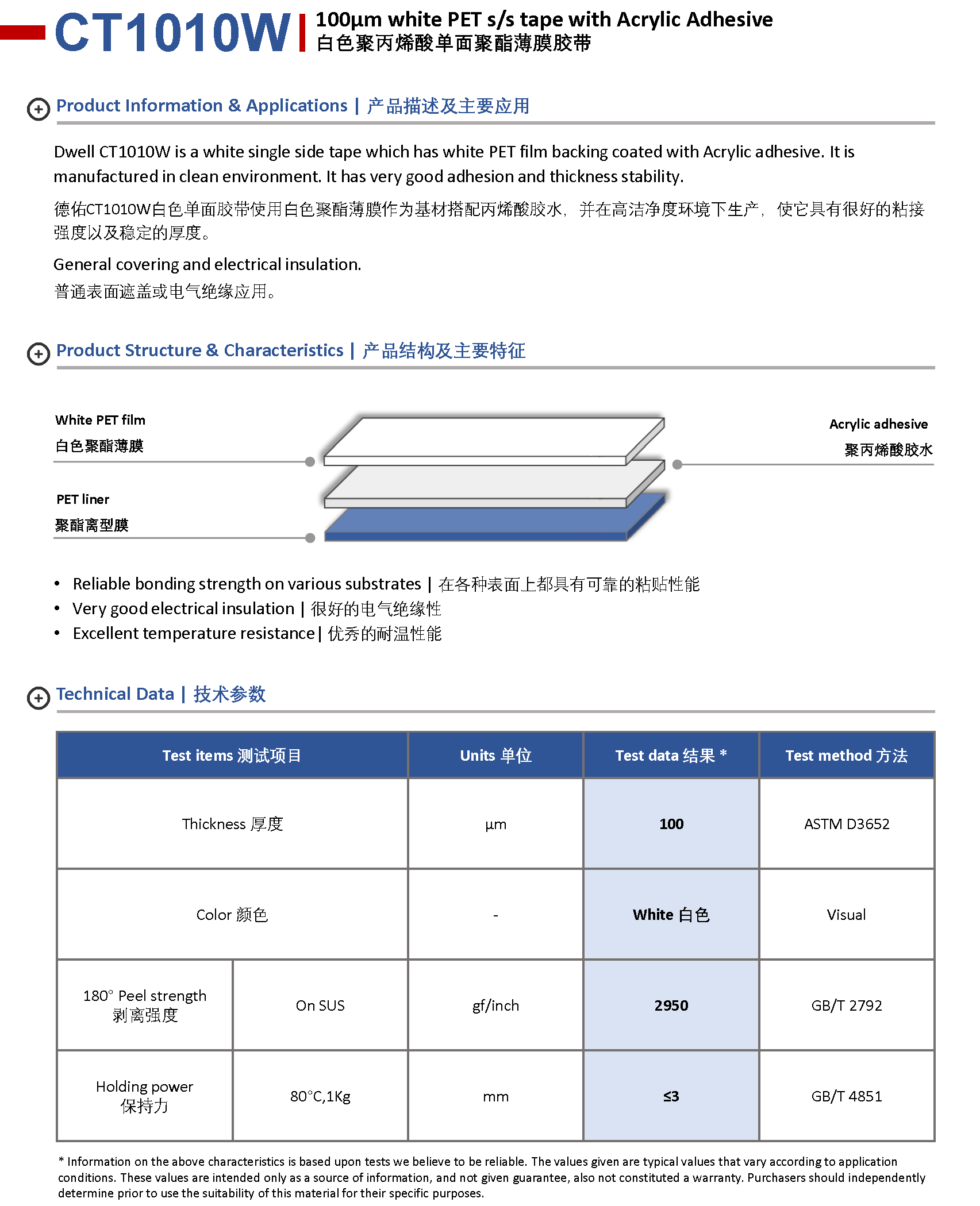 解決方案 > 單面薄膜膠帶 > Dwell CT1010W